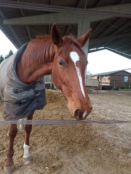 Heva JOY – Sehr hübsche Stute sucht ihre Herzensfamilie Soumensac 47120 Geboren am 03.05.2017 Beschreibung: Hier ist Heva, eine 8-jährige PP-Alzan-Stute, liebevoll zu Hause gepflegt. Sie ist ein echtes Sonnenscheinchen im Alltag, freundlich und respektvoll gegenüber den Weidezäunen. Sie liebt es, gepflegt zu werden, und schenkt ihr Herz gerne denjenigen, die sich Zeit nehmen, sie kennenzulernen. Herkunft: Mutter: Rose JOY Vater: Rex HAIE NEUVE Arbeitsstand: Heva soll nach der Geburt wieder in den Arbeitsalltag eingegliedert werden. Sie bewältigt Parcours bis 70 cm, 80 cm, zuhause springt sie gelegentlich über 1 m oder mehr. Sie arbeitet sowohl im Knotenhalfter ohne Zügel als auch im Ethologie-Halfter, liebt Bodenarbeit und Freiheitsdressur. Ausbildung: Sie besitzt den Level 4 in der ethologischen Reitweise, ist motiviert und engagiert. Im Galopp erreicht sie Level 4 im Reiten. Charakteristika: Alter: 8 Jahre Größe: 1,63 m Hübsche Bewegungen, ein eleganter, flüssiger Galopp Potenzial für Freizeit- und Turnierreiten Gesundheit: Heva ist gesund, eine sehr gute Mutter. Sie wird regelmäßig vom Tierarzt, Zahnarzt, Osteopathen, Hufschmied und Tierarzt kontrolliert. Entwurmung und Impfungen sind auf dem neuesten Stand. Kurz gesagt: Eine verwöhnte, gut gepflegte Stute, die in den besten Händen sein möchte. Ideal für: Einen erfahrenen Galopp-4-Reiter, der gemeinsame Momente des Vergnügens und der Verbundenheit sucht. Sie wird nur in eine liebevolle Familie vermittelt, in der ihr Wohlbefinden oberste Priorität hat.
