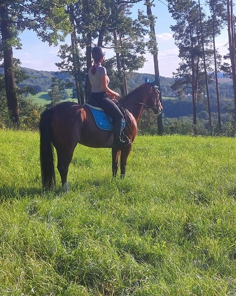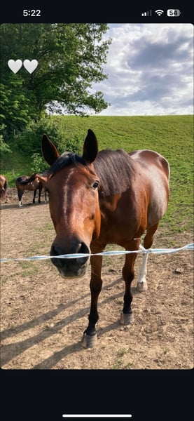 Higgins ist ein freundlicher, charmanter Wallach, der mit seinem sanften Wesen sofort überzeugt. Als ehemaliges französisches Trabrennpferd wurde er behutsam umgestellt und zeigt sich sowohl im Umgang als auch unter dem Sattel sehr brav. Er ist ein echtes Freizeitpferd und Umsteigerpferd, motiviert, lernfreudig und gut für Bodenarbeit geeignet. Schritt und Trab sind bereits gut ausgebildet; am Galopp arbeiten wir noch. Er braucht hier etwas Geduld, zeigt aber stetige Fortschritte. Higgins ist sozial verträglich, gesund, schmiede- und verladefromm. Er sucht erfahrene, einfühlsame Reiter, die Freude daran haben, ihn weiter auszubilden und ihm Sicherheit geben.