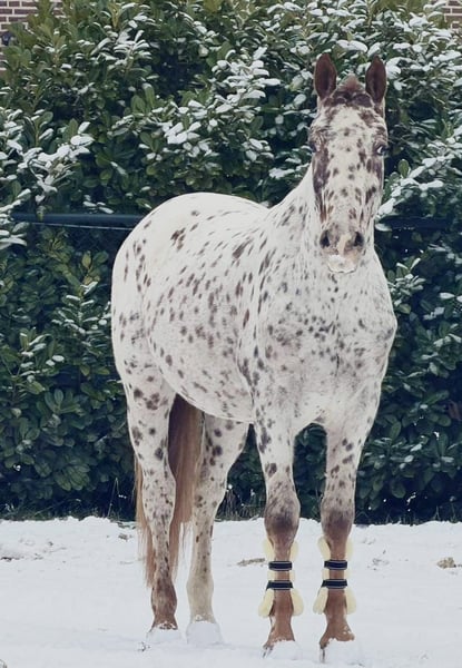 ✨ Te koop: Prachtige 4-jarige Appaloosa – ca. 1.63 m ✨ Deze knappe 4-jarige Appaloosa van circa 1.63 m is een echte eyecatcher 🤍🐎 Hij/zij wordt op dit moment rustig en correct in kennis gebracht met het longeren en het ruitergewicht, wat hij braaf en nuchter oppakt 💪 Het paard staat op twee ijzers 🧲 en is braaf bij de hoefsmid 👞. Ook laden en vervoeren op de trailer gaat probleemloos 🚛✨ In de omgang is hij sociaal en gedraagt zich netjes in een gemengde kudde 🐴🐴 Een jong paard met een fijne instelling en veel potentie 🌟 Perfect voor iemand die op zoek is naar een leuk toekomstpaard om verder op te leiden 🤍 📩 Interesse of vragen? Neem gerust contact op!