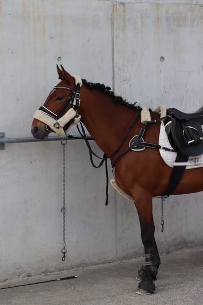 Met pijn in mijn hart neem ik afscheid van mijn 14-jarige Freiberger-Arabier-Trotter-Ponymix, omdat ik wil overstappen naar een groot paard. TinkaFee gaat graag de natuur in, of dat nu alleen of met z'n tweeën is. Tractors en honden zijn voor haar geen probleem. Ze heeft ook wedstrijdervaring. Op wedstrijden is ze heel lief en kijkt ze niet om zich heen. Bij het springen trekt ze sterk naar de sprong toe en heeft ze een duidelijke hand nodig, ofwel om haar vooruit te sturen of om haar terug te nemen. Ze springt alles zonder schrik te tonen. Maar ook vrijheidswerk/grondwerk doet ze met plezier en is ze zeer gemotiveerd om nieuwe dingen te leren. Als uw interesse is gewekt, neem dan gerust telefonisch of het liefst via WhatsApp contact met me op. Accessoires zijn inbegrepen bij de aankoopprijs.