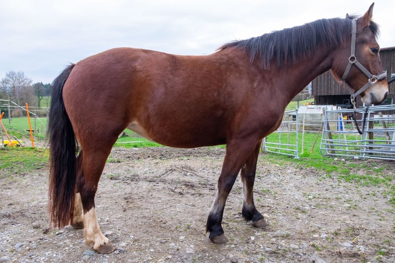 Vielversprechende Nachwuchsstute „Milady“ (Navarino x Hyundai) zu verkaufen Zum Verkauf steht die 2023 geborene Stute Milady – eine junge Dame mit bestem Charakter, ideal für Reiter, die sich ihr Nachwuchspferd selbst heranziehen möchten. Eckdaten: Name: Milady Geburtsdatum: 09.02.2023 Abstammung: V: Navarino | MV: Hyundai Aktuelles Stockmass: ca. 151 cm Preis: CHF 5'000.– (Verhandlungsbasis) Eigenschaften & Ausbildungsstand: Milady ist aktuell roh und wächst artgerecht auf. Sie besticht durch ihre sehr hübsche Optik und ein absolut unkompliziertes Wesen. Im Umgang zeigt sie sich äusserst lieb und anhänglich. Sie beherrscht das Fohlen-ABC bereits perfekt: sie ist halfterführig, schmiede- und verladefromm. Immer händelbar und dem Menschen zugewandt. Ein tolles Pferd für die Zukunft, das nun bereit für den nächsten Schritt in fördernde Hände ist. Gerne stehen wir Ihnen für Fragen oder zur Vereinbarung eines Besichtigungstermins zur Verfügung.