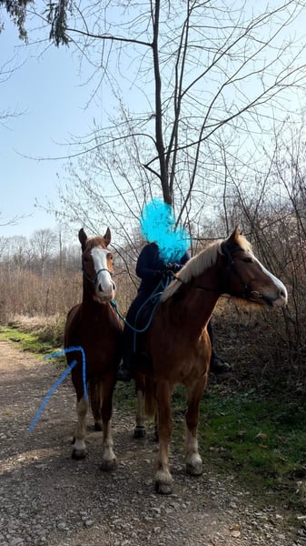 Vico impresses with his solid chestnut color and his good character. He is very willing to work and learns quickly. He has not yet been backed, but he handles being led as a companion horse and is well-behaved during lunging and ground work. The saddle does not impress him either when saddling up or when walking. His only issue arises when people jump, including dismounting from the saddle. Vico is barefoot and lives in a herd. Since he has started head-shaking after weaning from the foal pasture, I would like him to continue this free-range lifestyle, as currently, the head-shaking is not very disruptive. Therefore, I am offering him at a below-market price.