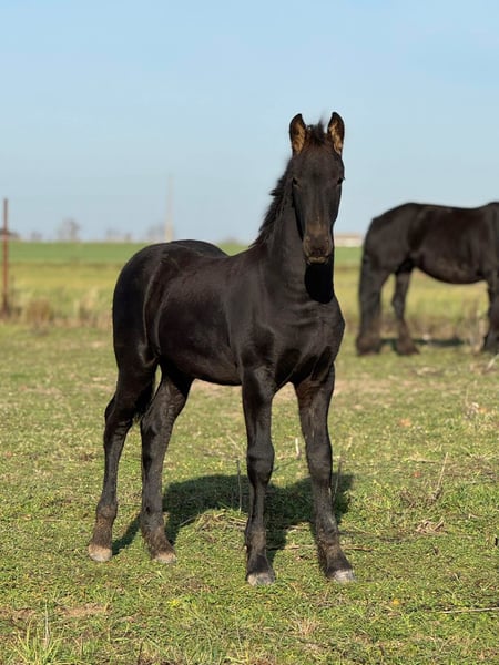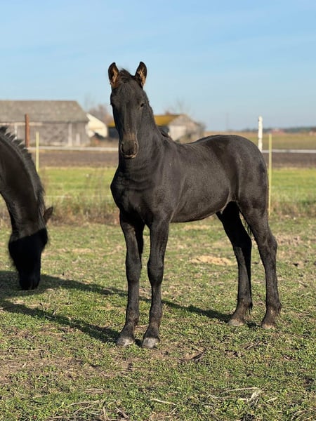 For sale: a stunning Friesian stallion! We present a young, promising horse born in 2025. This magnificent Friesian exemplifies the breed with an elegant conformation and a striking appearance. Standing at 14.8 hh, he is ideal for recreational riding and learning purposes. Friesian horses are renowned for their grace, strength, and character, making them excellent partners for various forms of recreation and training. If you are looking for a young, versatile horse for leisure riding, this stallion would be an excellent choice. Please contact us for more information and to arrange a viewing!