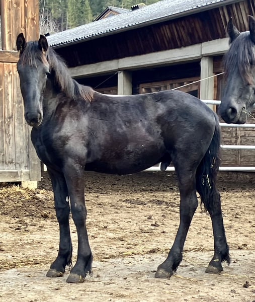 For sale: Young Friesian stallion – a promising prospect for dressage! We are offering a stunning black Friesian colt, born in 2023. He was Reserve Champion at Ramsau in 2023 and comes with full papers! His dam was the 2025 Day Champion. Standing approximately 16.1 hh, he combines typical Friesian characteristics with an elegant appearance. His strong build and noble expression make him a true eye-catcher. This young stallion is well-suited for dressage and is being trained as a riding horse appropriate for his age. His calm and friendly nature makes him an ideal partner for ambitious riders seeking a reliable young prospect. If you are interested or would like more information, please feel free to contact me. Arrange a viewing to meet this exceptional horse!
