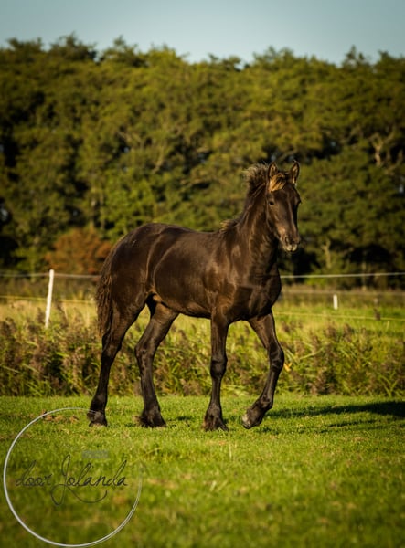 Are you looking for your dream horse? We are a Friesian and Baroque Pinto stud farm in 8851 RE Tzummarum, Netherlands. Every year you will find fantastic (over 40!) Friesian colts, Friesian fillies, baroque pinto foals, but also older Friesian mares and Friesian stallions and baroque pinto horses (feel free to take a look at our other advertisements). From species-appropriate husbandry, directly from the breeder. Our horses grow up very naturally in large herds and are therefore very well socialized. Most foals are born in May/June and are ready to wean from 6 months. Final stock mass between 1.55 -1.65m. The horses are microchipped with an equine passport, without KFPS paper, so that a Friesian is still affordable for everyone. Our horses know the ABC of herds, are still completely raw and not yet halter-pious. You are familiar with heavy traffic (tractor, shovel) and have not had any bad experiences. So you can train the horses as you like. We do not have trained horses. What else you will find with us: We have been breeding Friesian, Baroque Pintos and Friesian mix horses for almost 40 years. From our stud farm in the Netherlands we have many beautiful horses (0-15 years old) for sale. Our horses grow up very naturally in large herds and are therefore very well socialized. Here they live a dream horse life: in spring and summer on large meadows. In winter in large group stables. Our stallions each have their own herd of mares and are allowed to run there all year round. Pure nature and something quite special. A good character, cool in the head, strong, healthy and sweet are important requirements for us when breeding. Horse and human find each other with us and we are happy if our horse finds a nice place with you. Are you seriously interested?... We are looking forward to it! Then please call Roeline or write a WhatsApp: 49(0)15759302514 or 31 (0)612414444. We speak German, Dutch and English. Greetings from beautiful Tzummarum, Friesland, Netherlands