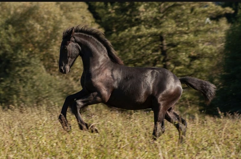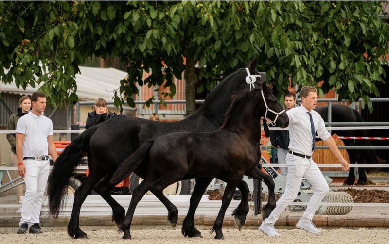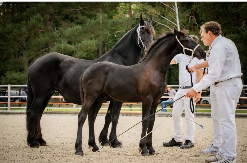 🖤 Friesian Colt by Elias 494 – born April 25, 2025 🖤 One of the last offspring of this beautiful stallion, who sadly passed away earlier this year. Dyk vom Zwönitztal is a stunning, typy Friesian colt with excellent lineage. Born on April 25, 2025, this young stallion already impresses with plenty of expression, correct conformation, and lovely movement. He received a Second Premium at the KFPS Friesian Stallion Show in Hosena. Sire: Elias 494 – KFPS registered stallion, renowned for his impressive presence, rideability, and offspring with top character. Dam: a registered mare by Ulke 338 Stb Sport. Description: This foal captivates with its elegant type, expressive, ground-covering gaits, and a friendly, confident demeanor. Ideal for breeding, shows, or future sport. He is raised appropriately in a herd environment and is regularly dewormed, vaccinated, and attended to by the farrier. Date of Birth: April 25, 2025 Breeding Association: KFPS Location: Zwönitz Price: €6,500 negotiable We welcome serious inquiries. Videos and additional information gladly provided upon request. 📞 Contact: Rudolph Family