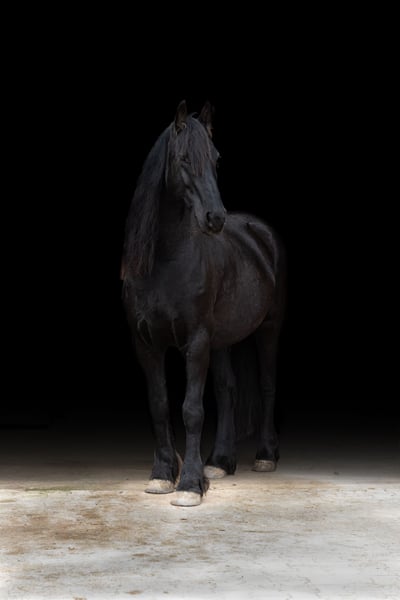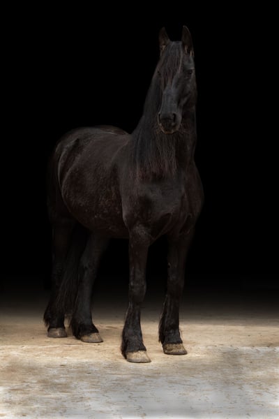 Aus privaten Gründen steht zum Verkauf Annelie Shela K, eine 10 Jahre alte typvolle Friesenstute mit Traummähne und gutem Fleiß, dabei aber sehr fein und immer gut zu händeln. Absolut menschenbezogen, extrovertiert und verschmust. Sie kommt auf Abruf aus der Herde und möchte mit ihrem Menschen arbeiten. Aktuelles Stockmaß 167cm, 660kg. Geboren 2016. Pier 448 x Mintse 384. KFPS Papiere vorhanden. Sie hatte als Fohlen eine hervorragende erste Prämie und hat eine Top Abstammung, wurde aber nicht weiter von mir vorgestellt und hatte auch noch kein Fohlen. Annelie ist seit sie 2 1/2 Jahre alt war in meinem Besitz und ich habe sie selbst nach klassischen-barocken Grundsätzen ausgebildet. Dabei wurde sie mit viel Geduld, sehr langsam und schonend eingeritten. Sie ist geritten in allen Grundgarten und Seitengängen im Schritt, Schulterherrein und Renvers im Trab. Spanischer Schritt wurde gerade unter dem Sattel begonnen. Dabei ist sie sehr fein im Maul, rollt sich nicht ein, und hört sehr schön auf Sitz und Bein. Sie geht alleine und in der Gruppe ins Gelände, ist dort aufmerksam, aber gut zu kontrollieren. Vom Boden aus ist sie sehr vielfältig ausgebildet: Longe, Doppellonge, "Fahren vom Boden", Dualaktivierung, Stangenarbeit, klassische Handarbeit, Zirzensik, Freiarbeit, Freispringen, etc. Sie kennt Boxenhaltung mit Gruppenpaddock und Offenstallhaltung, ist dabei sehr verträglich und rangniedrig in der Herde. Sie ist verladefromm und ging bisher immer problemlos barhuf. Bei der Hufbearbeitung steht sie brav. Röntgenbilder liegen nicht vor, aber laut Osteopathin sind die Gelenke und der Rücken klar. Zähne wurden regelmäßig gemacht, sowie Entwurmt und auch die Impfungen sind selbstverständlich aktuell und komplett. Rassetypisch hat sie immer mal wieder Probleme mit Mauke/Raspe, das lässt sich aber mit den üblichen Mitteln immer gut in den Griff bekommen. Sonst hat sie keine bekannten gesundheitlichen Einschränkungen. Da sie gerne auch mal etwas über motiviert sein kann, wünsche ich mir einen ruhigen bestimmten Menschen der weiß ihre Energie in die richtige Richtung zu leiten. Wer einen wunderschönen, motivierten Allrounder sucht für anspruchsvolle Freizeitreiter wird mit Annelie sehr glücklich werden. Gerne kann auch ihre gesamte Ausrüstung mit erworben werden. Platz vor Preis.