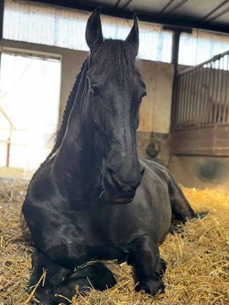 Elegante Rappstute der Rasse Friesen, geboren im Jahr 2012, mit beeindruckendem Stockmaß von 167 cm. Diese edle Friesenstute besticht durch ihre typische Erscheinung, ausdrucksstarke Mimik und ihre anmutige Bewegung. Sie stammt aus einer renommierten Zucht und wurde sorgfältig auf ihre Zuchtqualität hin ausgewählt. Die Stute verfügt über ein ruhiges und ausgeglichenes Wesen, ist gut geritten und zeigt sich im Umgang äußerst freundlich und kooperativ. Aufgrund ihrer Zuchtlinie eignet sie sich hervorragend für die Zucht oder als elegante Partnerin im Freizeit- und Dressursport. Ein Pferd mit viel Charakter, Charme und Potenzial – ideal für Liebhaber der edlen Friesen und Zuchtinteressenten. Für weitere Informationen oder eine Besichtigung stehe ich Ihnen gerne zur Verfügung.