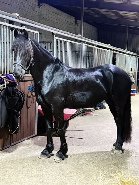 **For Sale: Beautiful Friesian Mare Looking for a New Home** We are selling our charming Immi, born in 2010. With her elegant black coat and a height of 163 cm, she is not only a head-turner but also a loyal companion for leisure activities. Immi is excellent for relaxed rides and is very well-behaved and people-oriented. She has a gentle nature and is suitable for both experienced riders and beginners who are looking for a reliable partner but can give her the necessary time to settle in. Imke is well-trained and has been driven in multiple harnesses in sports. She loves to explore nature and always shows a balanced character. She will only be given to the best hands, where she will receive the attention and care she deserves. If you are interested or have any further questions, please feel free to contact us. We look forward to your message!