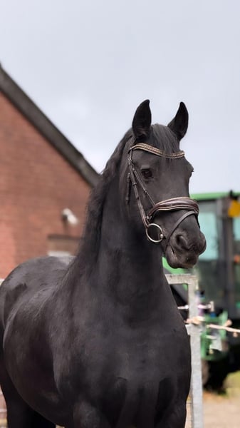 Schöne, kräftige Friesenstute. Sie war in der Vergangenheit Fohlenmutter und wurde bereits geritten, aber derzeit nicht.