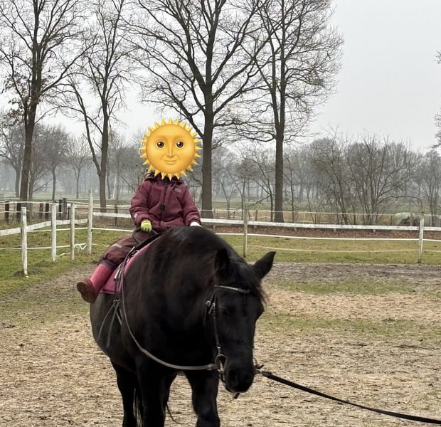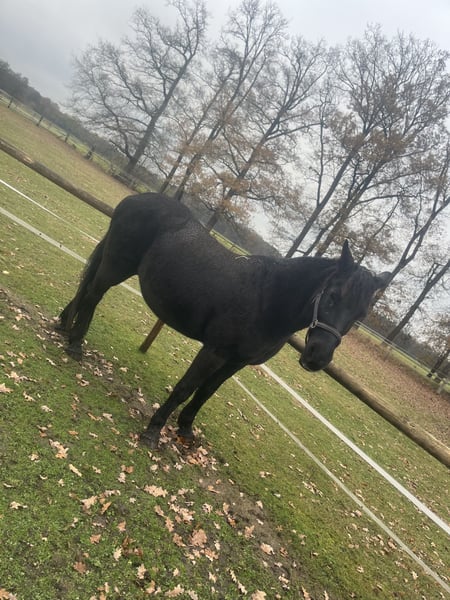 A very sweet and affectionate mare is looking for a loving home with a dedicated rider. Well-behaved and ridden by children, she is very gentle and refined to ride, always eager to please. However, she is not suitable for beginners and requires a rider who can provide her with confidence and security. When ridden in familiar terrain with a trusted lead horse, she remains relaxed. Nonetheless, she can also have very spirited days and needs regular exercise. She has always been ridden casually in Western style and kept in a mixed herd in an open stable. She is sound for the farrier, but has not been loaded onto a trailer for a long time. She will only be placed in the best hands.