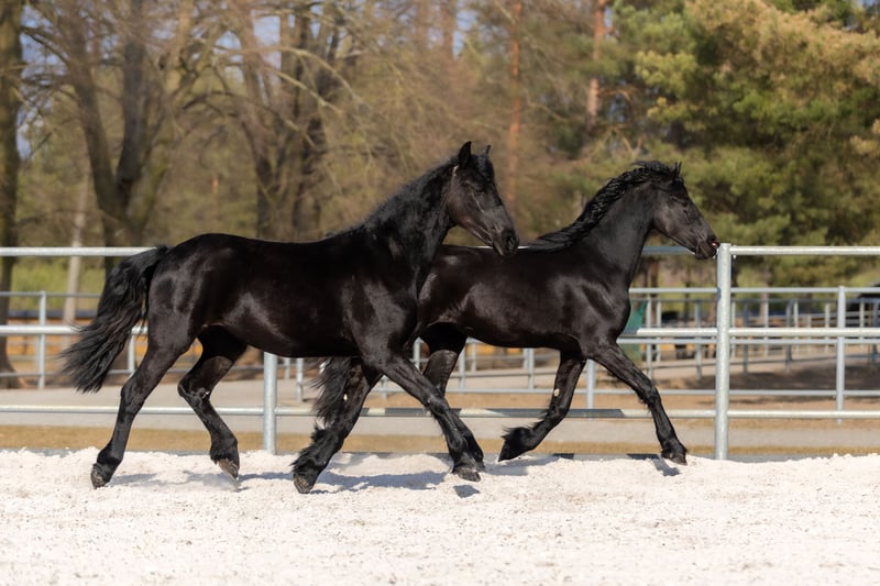 Schöne zweijährige Friesenstuten