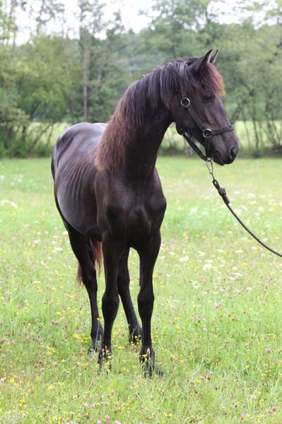 This young, elegant Friesian mare captivates with her impressive appearance and majestic demeanor. She moves very light-footedly, with a lot of overstride and impulsion. Whether at the show or in the dressage arena, she is sure to attract everyone's attention. She was born on 14.5.2023 and is by Sipke 450 (Teade x Ulke) out of the mare Aria (Jurre o. x Doaitsen). She is chipped and registered in the "Veulenboek". Winni is very alert, attentive, but also people-oriented and cuddly. She has mastered everything a horse of her age needs to know - she hooves easily, can be led and groomed. She is also very uncomplicated in the herd. She has of course been vaccinated, wormed and regularly presented to the farrier. She is happy to stay for breeding (very favorable conditions, several mates of the same age). She is healthy and can be tested at any time. Several interesting horses in the other ads. If you are looking for something else, please contact us. Do you need to convince yourself of our work? Visit our Facebook page, where you can also find reviews from our foreign customers.