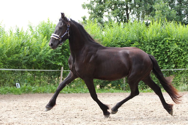 Detta unga, eleganta Friesian-sto fängslar med sitt imponerande utseende och majestätiska uppträdande. Hon rör sig mycket lättfotat, med mycket övertramp och impuls. Oavsett om det är på utställningen eller i dressyrarenan kommer hon säkert att dra till sig allas uppmärksamhet. Hon är född den 14 maj 2023 och är efter Sipke 450 (Teade x Ulke) och stoet Aria (Jurre o. x Doaitsen). Hon är chippad och registrerad i "Veulenboek". Winni är mycket alert, uppmärksam, men också människoorienterad och gosig. Hon behärskar allt som en häst i hennes ålder behöver veta - hon hovar lätt, kan ledas och skötas. Hon är också mycket okomplicerad i flocken. Hon har naturligtvis vaccinerats, avmaskats och regelbundet presenterats för hovslagaren. Hon är glad att stanna för avel (mycket gynnsamma förhållanden, flera kompisar i samma ålder). Hon är frisk och kan testas när som helst. Flera intressanta hästar i de andra annonserna. Om du letar efter något annat, vänligen kontakta oss. Behöver du övertyga dig själv om vårt arbete? Besök vår Facebook-sida, där du också kan hitta recensioner från våra utländska kunder.