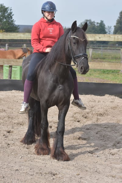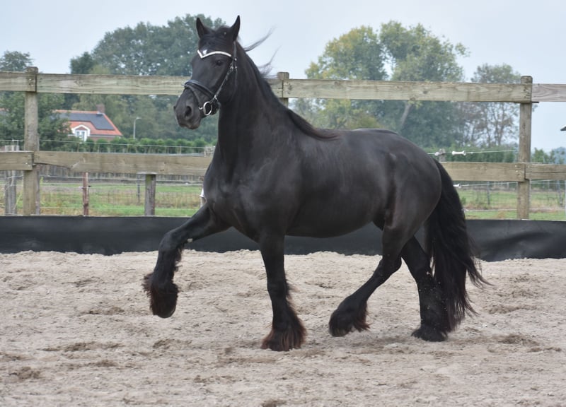 Aquí está: ¡Marina! (nombre de nacimiento María). A través de sus ojos sinceros, se puede ver que esta dama tiene un carácter muy fiable. Este es uno de los pocos caballos que realmente no tiene NADA de qué quejarse. Es super honesta, tranquila y cariñosa. Tiene tres aires super correctos, elevados pero a la vez amplios, lo que la hace muy adecuada para el deporte. Posee un informe de inspección reciente, incluyendo análisis de sangre, con el que ha sido aprobada sin ninguna objeción para el deporte. Está completamente libre de defectos. Mide aproximadamente 158 cm de altura actualmente. Marina nació el 5 de mayo de 2021 en España. En los Países Bajos tuvo un potro. La gente decidió quedarse con el potro, y así Marina puede ir a un nuevo dueño cariñoso. Ha sido entrenada para la carreta, como se puede ver en el video. La estamos montando de manera de doma y ya pudimos sentarnos sobre ella de inmediato. No está en un rango de precios bajo: esta es una joya. Una entre miles.