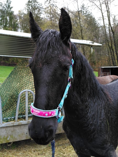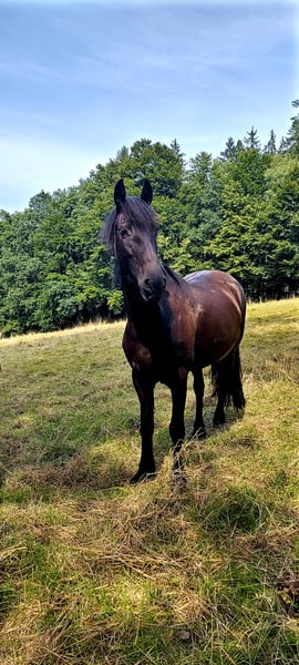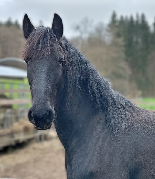 Traum in Schwarz: Elegante 4-jährige Friesenstute mit viel Potenzial Zum Verkauf steht diese bildschöne, 4-jährige Friesenstute, die nicht nur durch ihre klassische Optik, sondern auch durch ihren ehrlichen Charakter überzeugt. Eckdaten: Rasse: Friese Alter: 4 Jahre (Geboren: 30.03.2022) Geschlecht: Stute Stockmaß: ca. 160 cm Abstammung: Karon vom Goldfeld x Puschkin Papiere: sie ist eingetragen im FPZV, als Fohlen prämiert mit 1. Prämie Beschreibung: Diese junge Dame besticht durch ihr schwarzes Fell und die typisch schwungvollen Gänge. Sie zeigt sich im täglichen Umgang sehr menschenbezogen, neugierig, brav beim Putzen und schmiedefromm. Ausbildungsstand: Ihrem Alter entsprechend ist sie noch nicht geritten. Kennt Halfter und Bodenarbeit. Sie lernt extrem schnell, ist stets motiviert und möchte gefallen. Aufgrund ihres ausgeglichenen Temperaments ist sie ein ideales Nachwuchspferd. Regelmäßig entwurmt und geimpft und die Zähne kontrolliert. Sie ist bei uns im Offenstall im Herdenverband aufgewachsen. Wir suchen für sie ein 5-Sterne-Zuhause, in dem sie weiter gefördert wird. Preis: 12.900,00 € Bei ernsthaftem Interesse freue ich mich über eine Nachricht, um einen Termin zum Kennenlernen zu vereinbaren.