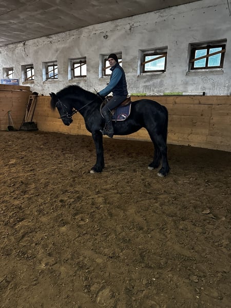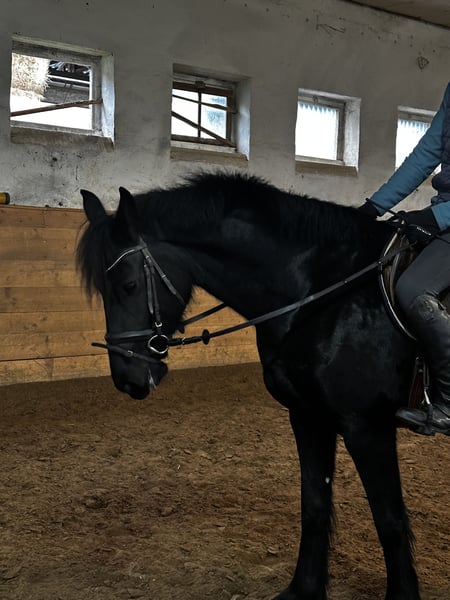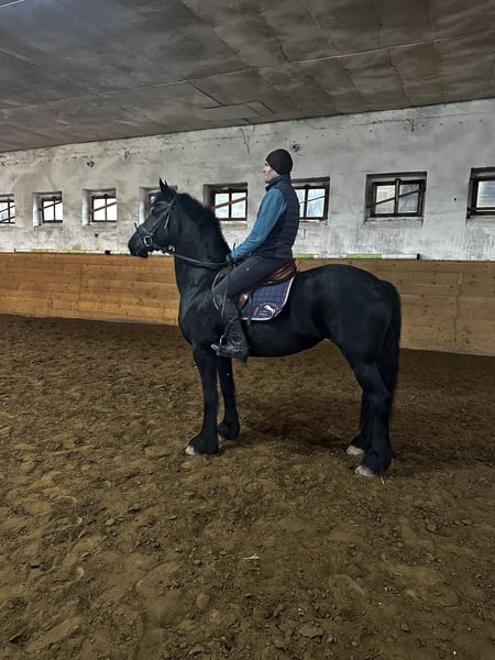 Verkaufe elegante Friesen-Stute – Geburtsjahr 2021 Zum Verkauf steht eine wunderschöne Friesen-Stute, geboren im Jahr 2021. Mit einem Stockmaß von ca. 165 cm vereint sie beeindruckende Größe und edlen Ausdruck. Die Stute ist zweispännig im Fahren einsetzbar und zeigt sich hierbei im Umgang äußerst angenehm und lernwillig, aufgrund ihres Alters benötigt sie in manchen Situationen noch einen sicheren Partner. Ideal für Reiter, die ein unverbrauchtes und charakterstarkes Pferd suchen. Sie befindet sich in professionellem Beritt und ist bereit für die nächsten Abenteuer. Nicht für Anfänger geeignet. Bei Interesse stehe ich gerne für weitere Informationen unter 01774392222 zur Verfügung. Ein Probereiten ist jederzeit möglich.