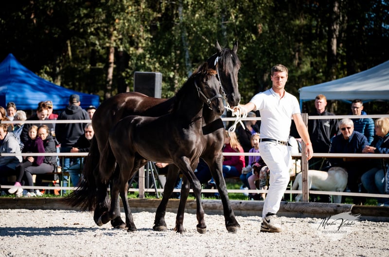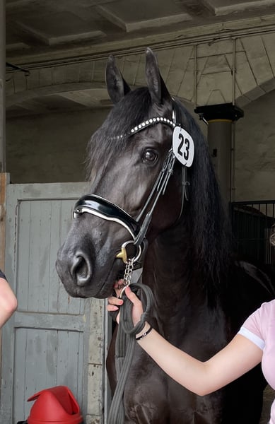 *Rare* For sale is a charming Friesian mare for high-quality breeding. She was born in 2019, belongs to the Stamm 50, and has a consistently premium pedigree. With a height of 165 cm, she is suitable for both experienced riders and ambitious beginners. Lotte had a colt that was awarded and entered into the studbook. Birth and handling are problem-free. She is in foal to Manno 541 Stb for spring 2026. This mare impresses with her friendly disposition and willingness to learn. She is well-mannered, easy to handle, and shows great talent under saddle. Whether in dressage or leisure riding, she is versatile and has the potential to shine in various disciplines. The mare is regularly vaccinated, dewormed, and has a current health check. She is in good training condition and ready to start her journey with her new owner. If you are interested or have further questions, please feel free to contact me. Visit us and see for yourself this wonderful mare!