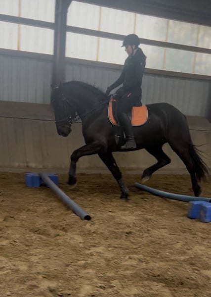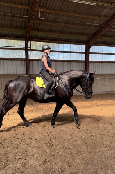 Por encargo Vendo una yegua de 6 años de edad, mezcla de Frisón (Friesian) y caballo árabe-húngaro (Warmblood). Mide aproximadamente 1,70 m y tiene un tipo fuerte y robusto, típico de los caballos de sangre caliente. Formación y áreas de uso Lili ha sido montada en ocio durante los últimos dos años, con énfasis en la doma. Antes de su actual dueño, trabajaba en carro, y puedo imaginarla como un caballo confiable para tiro o para actividades de ocio. Actualmente no está en entrenamiento y necesitaría volver a ser puesta en trabajo. Carácter Lili tiene carácter propio, es testaruda y claramente no es adecuada para principiantes. Necesita una conducción firme y ejercicio diario para desarrollar su potencial. Razón de venta Debido a cambios en mi situación laboral, actualmente no dispongo del tiempo necesario para atenderla adecuadamente. Por ello, busco un hogar adecuado donde reciba la atención y el estímulo que necesita.