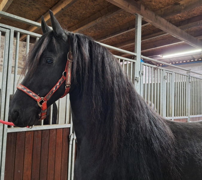 Haylinn ist eine schöne, rassetypische Friesenstute. Sie verfügt über eine sehr gute Bewegungsqualität und trägt eine lange Mähne. Haylinn wurde von uns in der Zucht eingesetzt, ist jedoch weder unter dem Sattel noch im Wagen gearbeitet worden. Sie ist eine gute Mutter und hat uns gesunde, schöne Fohlen geschenkt. Haylinn war noch nie auf einer Körung. Aufgrund von Zuchtverkleinerung bieten wir sie nun zum Verkauf an. Haylinn ist für 2026 tragend, Ultraschalluntersuchung bestätigt Trächtigkeit von dem Friesenhengst Nyk 538. Für weitere Informationen können Sie uns unter +31641043916 anrufen oder per WhatsApp kontaktieren.