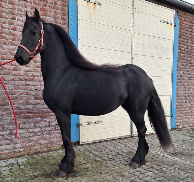 Haylinn is a beautiful, breed-type Friesian mare. She moves very well and has a long, flowing mane. Haylinn has been used by us for breeding purposes and has not been trained under saddle or for driving. She is a good mother and has given us beautiful, healthy foals. Haylinn has never been presented at a keurings. Due to a reduction in our breeding program, we are offering her for sale. Haylinn is confirmed pregnant for 2026 with the Friesian stallion Nyk 538. For more information, please call or WhatsApp +31 641 043 916.