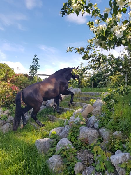 I am selling my beautiful 7-year-old Friesian mare, suitable as a breeding mare or leisure horse (trail riding horse). Her height is approximately 1.65 m. Unfortunately, due to having arthritis, she is only conditionally rideable. She can only be given to the very best hands. Pedigree: Father: Omer 493 Mother's father: Wibe 402 She is regularly dewormed, vaccinated, presented to the farrier (every 7 weeks), has her teeth checked, and a complete blood count is done every few years. She is also familiar with trailer loading, competition atmosphere, trail rides or walks alone, cross-country trails, and groundwork. If Helmie has piqued your interest, feel free to message me for more information or to schedule a viewing. Location: 82234 Best regards, Markus