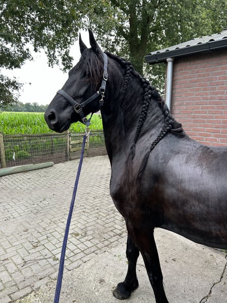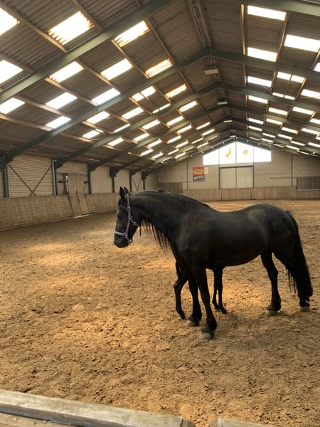 Prachtige gitzwarte stermerrie met haar hengstveulen te koop. Chique aansprekend hoofd, mooie gangen en hard beenwerk. Heeft al vier mooie veulens gekregen waarvan de laatste in de koop inbegrepen. Bevalt gemakkelijk en is een goede moeder. Is basis beleerd maar staat stil ivm veulen aan de voet. Inteelt 1,37 Verwantschap 18,8 Merriestam 049