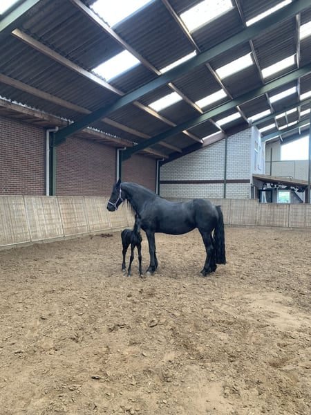 Wunderschöne tiefschwarze Stute mit Hengstfohlen zum Verkauf. Eleganter, ausdrucksvoller Kopf, schöne Gänge und kräftiges Beinteil. Hat bereits vier schöne Fohlen bekommen, von denen das letzte im Kauf inbegriffen ist. Ist leicht zu handhaben und eine gute Mutter. Ist grundausgebildet, steht aber momentan still wegen des Fohlens am Fuß. Inzucht 1,37 Verwandtschaft 18,8 Mutterlinie 049