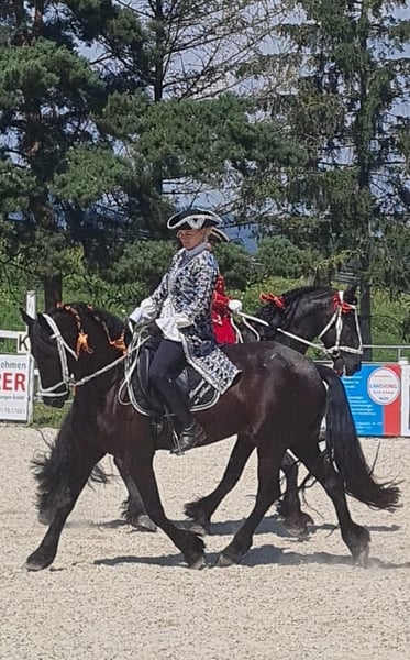 Frieda sucht ihren Menschen! 8 jährige Stute, sehr zuverlässig in Show und Training. Wurde auch von meiner 12jährigen Tochter geritten. Sehr tolles verschmustes Pferd fürs große Viereck oder Show.