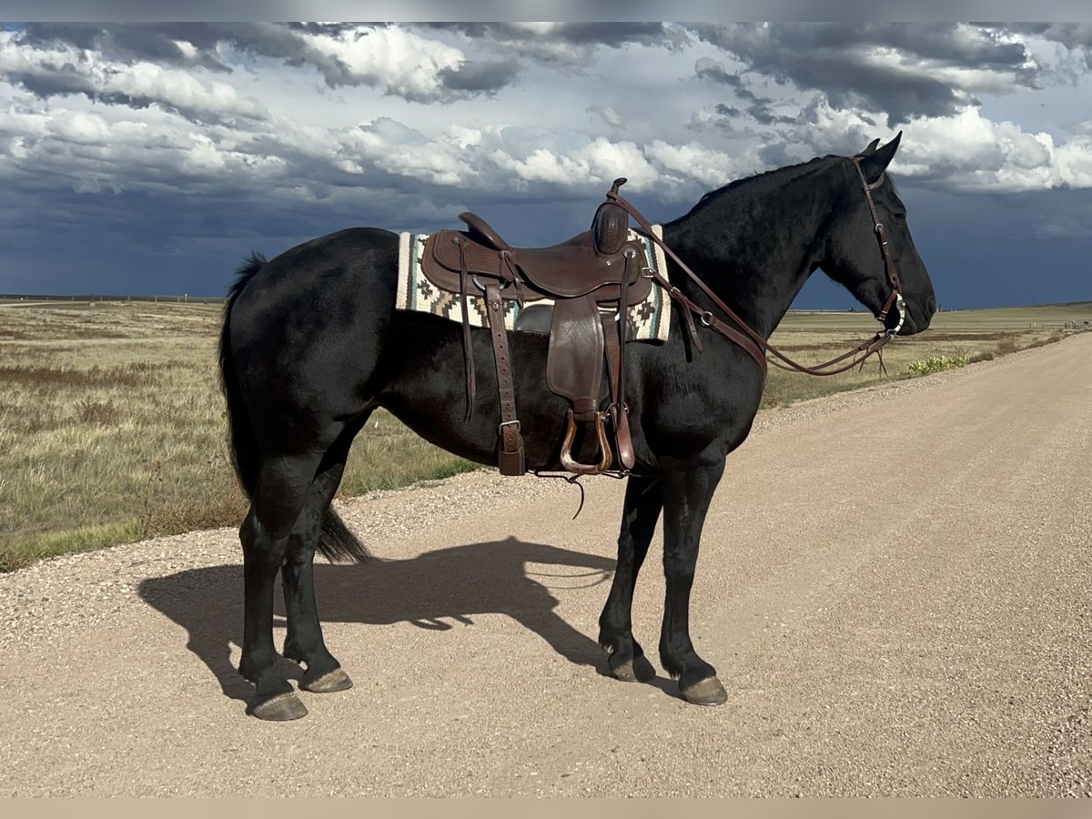 2018 FriesianxQH mare registered with Friesian Heritage Horse and Sport Horse International Stands 14.3 hands. Tape weight estimates approximately 1200 lbs. She is a stout girl. Journey is a sweet, friendly and willing mare to work with. Easy to be around, great to catch, and a joy to ride. Good for the farrier. UTD on coggins and health. Walk/jog/lopes with ease, great body control - hind quarters, forequarters, ribcage. Simple lead change, side pass, open/close gates, swing a rope, drag a log, carry a flag. She has nearly 100 miles riding outside and on the mountain this summer and has been used to push cattle, riding alone or with a group, front of the line or back of the pack, she is happy to go. Rides in a bridle one handed, in a snaffle or a hackamore. Journey is amateur friendly and gets along well with youth that have some experience. Journey has been owned by the same family since she was a weanling, we can answer any questions! Reach out for more information and video!