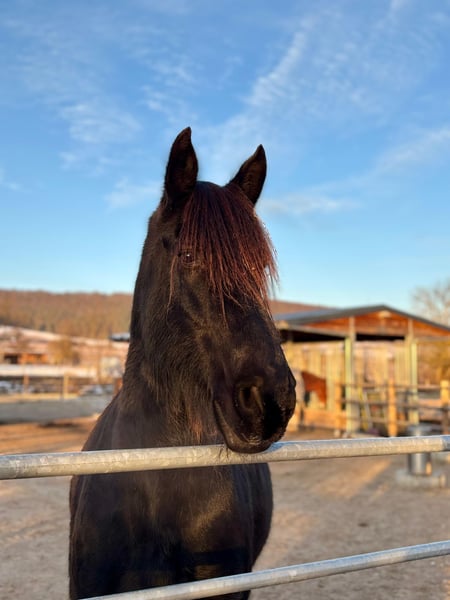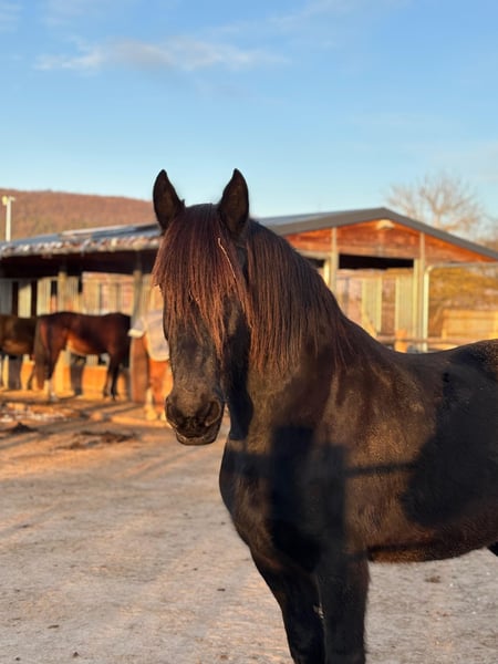 Für meinen 15-jährigen Friesenwallach Jordan suche ich einen einfühlsamen, erfahrenen Menschen, der nicht nur reiten, sondern eine echte Beziehung zu seinem Pferd aufbauen möchte. Jordan ist kein Sportpartner und kein Anfängerpferd, sondern ein Pferd für jemanden, der Ruhe, Gefühl und Verlässlichkeit mitbringt und das Pferdewohl an erste Stelle setzt. Jordan begleitet mich schon seit mehr als 10 Jahren und wurde erst im vergangenen Jahr professionell eingeritten (Beritt bei Emma Stauffenbiel) und ist ein braves, angenehmes Geländereitpferd, das sich bei korrekter, ruhiger Einwirkung zuverlässig zeigt. Wenn man ihm Zeit gibt und sein Vertrauen gewinnt, erhält man einen echten 'partner in crime'. Er braucht daher einen sicheren, erfahrenen Reiter, der klar, fair und fein mit ihm umgeht. Der Einsatz wegen eines ausgeheilten Fesselträgerschadens ausschließlich im Gelände und Freizeitbereich. Haltung & Standort: Pensionspferdestall Lindig, 99448 Hohenfelden (fester Standort) Wallachherde Offenstall im Winter 24-Stunden-Koppel im Sommer Alle laufenden Kosten (Pension, Hufschmied, Tierarzt etc.) sind von der übernehmenden Person zu tragen. Ein direkter Verkauf an einen echten Traumplatz ist zu einem Festpreis von 8900 € vorstellbar. Im Sinne von Jordans Wohlbefinden wird jedoch eine vorgeschaltete „Pferd-zur-Verfügung“-Vereinbarung bevorzugt, damit sich Mensch und Pferd in Ruhe kennenlernen können. Bei einer späteren Übernahme ist ein deutlich (!!!) reduzierter Kaufpreis vorgesehen.