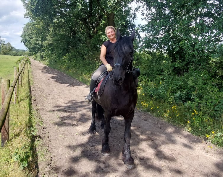 Looking for a Riding and Care Partnership: I am seeking a reliable and conscientious riding and care partner for my 16-year-old Friesian gelding (leisure horse), committed to a fixed schedule of two days per week until at least early November 2025. Are you flexible? Can you also cover multiple days occasionally (for holiday cover or in case of illness)? You have experience and enjoy classical riding, recreational riding, and groundwork with horses? Are you confident in the saddle? Do you also enjoy riding in the terrain? Are you willing to take riding lessons with my instructor? You are at least 25 years old? Are you prepared to care for the horse if it falls ill? Do you possess some knowledge about horses? Can you recognize signs of lameness or other issues? You have a friendly, empathetic nature and enjoy caring for horses? Are you willing to do stable work (e.g., mucking out the box)? Do you know a lot about horse care? If so, you might be the right person! My Friesian is very friendly and easy-going. He’s very eager to move out in the terrain but still easy to handle. He is quite brave, curious about his surroundings, and then no longer afraid. He’s more of a relaxed type of horse. He is also regularly ridden in training with my instructor for correction. My Friesian needs a bit of motivation and human assistance in movement. You should be an experienced rider and able to handle horses from the ground as well. Due to his sensitivity, he needs to trust his human partner. When the trust is right, he becomes a very good friend. A gentle horse person would be advantageous. He doesn’t like rough handling. My 16-year-old Friesian gelding (leisure horse) is located in Hamburg-Sülldorf (postal code 22589). We have a riding path right next to the stable and a beautiful riding area in Klövensteen. The stable has an indoor arena, outdoor riding arena, large jumping field, lunging circle, and a covered round pen. Further details can be discussed by phone. If interested, please contact me at 0179 113 29 17 or send a WhatsApp message. The riding partnership fee is €100 per month.