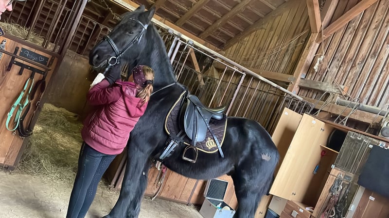 Leider muss ich mich aus privaten Gründen von meinem lieben Friesen trennen , er ist eine Lebensversicherung, am Platz sowohl im Gelände . Keine Unarten und immer lieb .