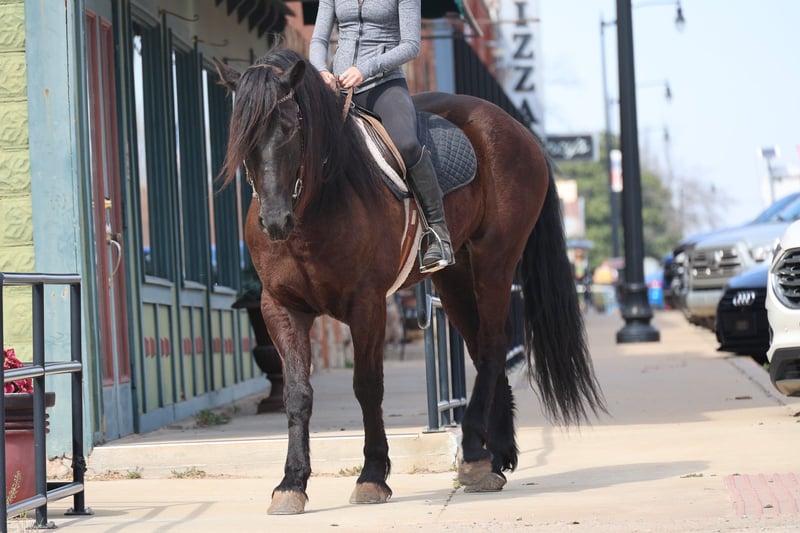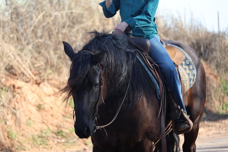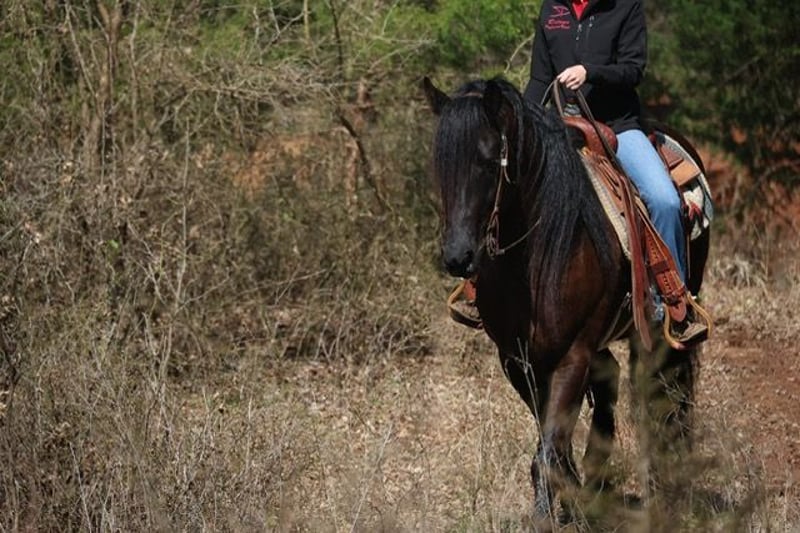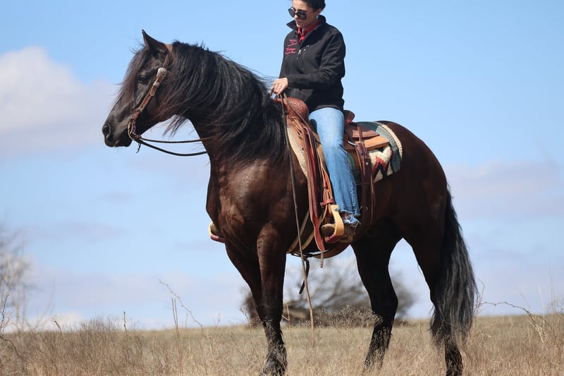 ⚜️𝓽𝓱𝓮 𝐆𝐎𝐋𝐃 𝓢𝓮𝓵𝓮𝓬𝓽⚜️ Happening now thru MONDAY | MARCH 23rd - Available EXCLUSIVELY on HorseBid's website! For more details and to register visit: www.Horsebid.com CONSIGNOR CONTACT: Dolago Performance Horses 860-942-0623 LOCATION: Ripley, OK BREED: Friesian Cross REGISTERED: No COLOR: Black HEIGHT: 15 AGE: 5 GENDER: Gelding If you’re looking for a horse that will absolutely stop people in their tracks, Black jack is the one. He has the kind of presence that’s hard to find… big, elegant, and eye catching everywhere he goes. With his great confirmation , kind eye, and striking look, he truly stands out in a crowd. He stands 15 hands tall weighing 1200 lbs. He’s thickly built with a mane and tail just as thick… talk about hair goals! This is the type of horse that people notice immediately when you step off the trailer. Not only does he have the looks to impress, but he also has the personality to match. He is extremely friendly and loves attention, always the first to meet you at the gate and happy to be around people. He’s a very easy keeper in a stall, pasture, or run. Under saddle he is incredibly smooth and comfortable to ride. He is soft, willing, and has a great mind, making him very easy to get along with no matter the rider. He has a nice stop, turn around, and he rides in your hand. Whether you’re riding in the arena or out exploring, he stays relaxed and confident. He’s the type of horse that gives his rider a lot of confidence because he handles new situations with a calm attitude and a willing mindset. He’s been trail rode countless miles, through town, water, ditches, and anything thats in front of him. He’s been rode english and is just a great english horse with a great jump! He’s also been used as a ranch horse many times tagging calves, sorting at the feed lot, and opens and shuts gates. He’s been in a few parades and wedding pictures and never batted an eye. One of his best qualities is his willingness and bravery. Point him somewhere and he will go without hesitation. He will ride through or into just about anything you ask him to, showing a great deal of trust. Horses like this are hard to find because they combine great looks, a kind personality, and a willing attitude all in one package. This Friesian cross gelding is the kind you can enjoy every day and be proud to own wherever you take him.