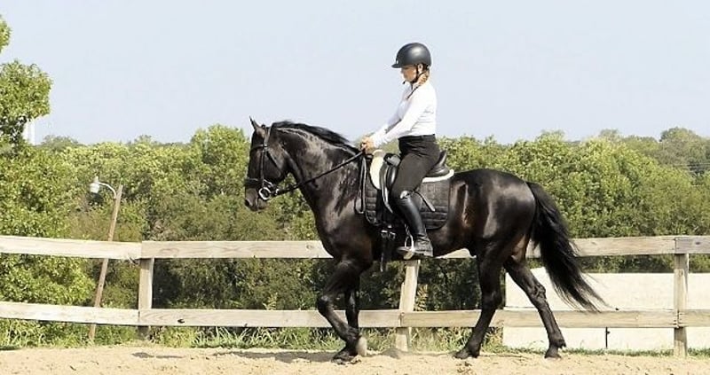 Frisón Altura: 15.2 Año: 9 Duke es un caballo divertido y vistoso, con una gran habilidad para la equitación. Es tranquilo y se deja manejar fácilmente tanto por niños como por adultos. Sería un excelente caballo para todo tipo de disciplinas y, gracias a su boca suave, disfrutaría mucho en la pista de doma clásica. Por su apariencia y movimientos, también sería ideal para paseos a caballo. Se vende por enfermedad. Listo para esquilar, herrar y transportar. ¡Te encantará! Contáctanos para más información. 🤝 La confianza es mutua. 🏥 100% sano. 🎥 Vídeo disponible.