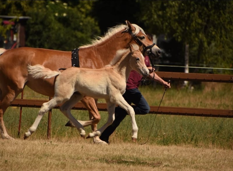 This little man can be weaned immediately. He is socially compatible, sweet, and absolutely people-oriented. His mother, the Tyrolean stallion Wendelin, was a championship mare and impresses with absolutely wonderful character traits when riding and driving. The father Neuglanz by Neustern also convinces with impeccable character and willingness to perform. He himself was already awarded the foal premium at this year's foal show and received, among other things, a score of 9.0 for his walk. So, anyone looking for a future versatile partner will find it here.