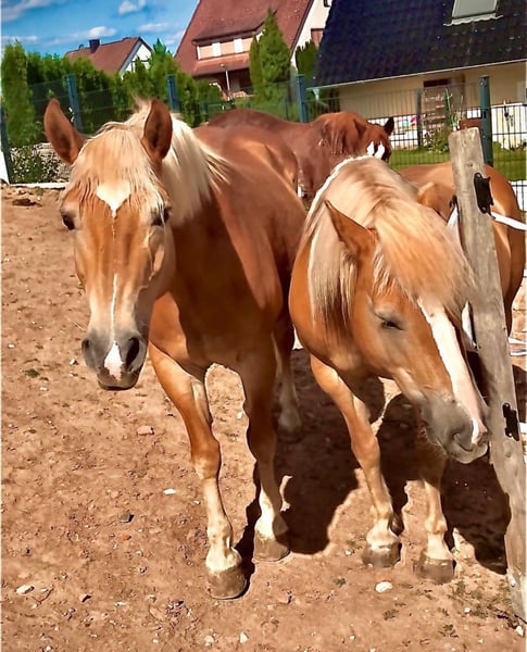 Two sweet Haflinger mares – available individually or as a pair 🌟 We are offering two charming Haflinger mares, who are looking for a new, suitable home either together or separately. 🐴 Lene – the reliable soul (16 years old, approx. 14.8 hh) Lene is a truly lovable and experienced leisure horse. She has been ridden in her free time and is especially well-behaved in the arena and on trail rides. She has also been successfully driven in a pair. Currently, she is kept as a companion horse while recovering from laminitis and recently received a new, properly fitted shoeing. In handling, she shows herself to be: - Very social and easy to get along with - Attentive and people-oriented - Calm and uncomplicated - Suitable for children and beginners A real life insurance for relaxed hours with your horse. 🐴 Peggy – the sensitive, eager learner (10 years old, approx. 14.3 hh) Peggy is a younger, motivated mare without registered pedigree. She has been driven in a pair with Lene and has recently been backed. She has a lot of potential but requires a calm, experienced handler, as she tends to be quite sensitive. What makes her stand out: - Socially compatible with other horses - Prefers working in company rather than alone - Is familiar with dogs, tractors, and traffic - Has been worked on the double lunge line - Eager to learn and curious In handling, she can occasionally show her “pony stubbornness” – therefore, she is not a pony for children and not suitable for beginners. 💛 Together or separately The two get along well and are preferably sold as a pair, but individual sale is also possible. 📍 We wish for both of them a loving, suitable home where their individual needs are appreciated. If interested, we look forward to hearing from you.