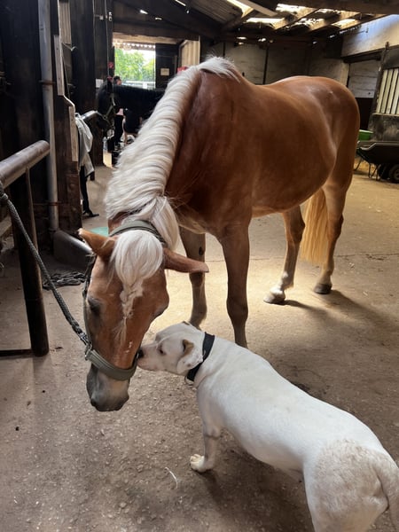 Je vends ma jument Haflinger « Mika », elle a 11 ans et mesure 1,55 m. Il ne semble plus vraiment y avoir de compatibilité entre nous, et elle ne mérite pas cela. Elle est typiquement un Haflinger, parfois un peu têtue, déjà dominante, et ferait tout pour une friandise. Parfois, il faut aussi lui remettre des limites, c’est pourquoi elle n’est pas adaptée aux débutants ni aux enfants. Elle se laisse gentiment brosser et mener par des enfants, mais un adulte doit toujours être présent. Actuellement, nous reprenons l’entraînement après une période de quarantaine due à une maladie infectieuse. En carrière, elle se débrouille plutôt bien, mais il lui manque encore un peu d’équilibre et de force. Son domaine préféré est la randonnée, c’est pourquoi je pourrais l’imaginer principalement comme cheval de loisir ou d’extérieur, pour une promenade ou quelques sauts occasionnels. Elle connaît la double longe, le travail à pied, et maîtrise quelques tricks. Elle a beaucoup de volonté, d’enthousiasme et souhaite être travaillée. Quelques jours de repos sont acceptables, mais si cela devient fréquent, elle peut devenir difficile ou s’ennuyer. En comportement, elle peut parfois être un peu particulière et nécessite une personne compréhensive, capable de lui imposer des limites. Actuellement, elle est en paddock avec un cheval en activité, mais j’ai le sentiment qu’elle y est stressée à cause du partage constant de son alimentation. Je souhaite donc pour elle un box avec un accès à un paddock toute la journée, en troupeau. Elle présente un léger eczéma estival, que nous gérons bien avec des pulvérisations, des soins réguliers et parfois une couverture anti-insectes. Je laisse également la selle et certains autres accessoires, comme des couvertures. Un examen vétérinaire avec radiographies des jambes, réalisé en avril 2025, est disponible.