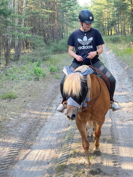 Meyla is a spirited, intelligent Haflinger cross mare looking for her person – not just anyone, but her very own. Born in 2013, she stands approximately 14.1 hh and is barefoot. She is a true leisure horse with a big heart for liberty and groundwork. When engaged with, she listens attentively, eager to learn, and shows great joy in shared activities. She lacks motivation on the riding arena but truly blossoms outdoors. In the field, she approaches with enthusiasm and curiosity, loving variety and nature. Meyla is spirited, cheeky, and has a good sense of humor – she enjoys testing boundaries but remains honest and very human-oriented. She wants to be seen, needs clear communication, movement, and the feeling of being needed. Currently, she is a bit too well-fed and would benefit from more regular work. She is healthy and is being offered for sale with a heavy heart, as I can no longer meet her needs and training requirements. Meyla is a typical one-person horse and is looking for someone who appreciates her energy and can lead her with patience, consistency, and heart.