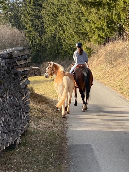 Wir suchen für unsere 14-jährige Haflingerstute ein liebevolles, erfahrenes Zuhause. Mit einem Stockmaß von ca. 1,45 m und ihrem freundlichen Wesen ist sie eine tolle Partnerin für Menschen, die Freude an einer feinfühligen, lernwilligen Stute haben. Sie ist angeritten, benötigt jedoch weiteren Beritt. Besonders bei der Bodenarbeit zeigt sie sich aufmerksam, lebensfroh und sehr motiviert – ideal für jemanden, der sich gerne intensiv mit seinem Pferd beschäftigt. Sie ist schmiede- und verladefromm, wird aktuell barhuf gehalten und zeigt keine Probleme dabei. Wichtig zu wissen: Sie scheuert sich gelegentlich, wurde jedoch negativ auf Ekzem getestet. Besichtigung nach Absprache möglich – bei ernsthaftem Interesse gerne melden!