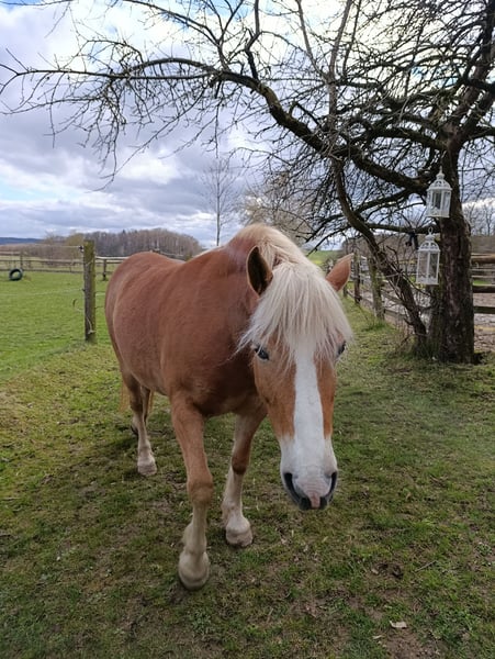 Freizeitpferd Edelbluthaflinger Kennt Hunde, Traktoren, Straßenverkehr. Ist lieb im Umgang.