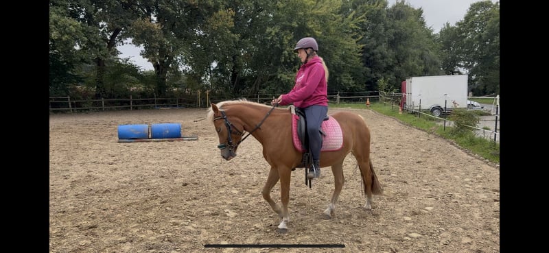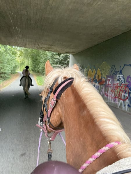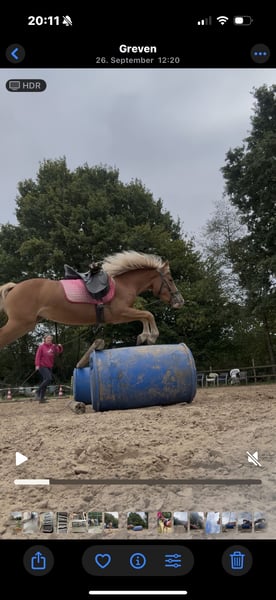 Beautiful 3-year-old Haflinger cross mare. She is approximately 14.2 hands. This stunning 3-year-old pony mare, Malou, was born on July 5th, 2022. Her sire is an Edelbluthaflinger, and her dam is a riding pony. Malou is well-behaved and easy to handle. She has been lunged, loads calmly into the trailer, and is familiar with trail rides, obstacle courses, walks, cars, dogs, and cats. She can be ridden in walk. She is regularly dewormed, has hooves that are easy to shoe, and currently measures about 14.2 hh. Malou is not a pure children's pony. In the past, she has occasionally shown that she does not always get along with children. However, this has improved significantly in recent months, and she now allows children to groom and lead her without any signs of insecurity. A fantastic pony, ideal for someone looking to further develop her training. Location: Near Münster