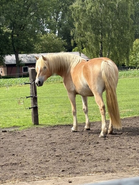 Haflinger Stute – jung, roh & mit viel Potenzial. Zum Verkauf steht eine wunderschöne Haflinger Stute, geboren am 22. April 2022, mit einem aktuellen Stockmaß von ca. 1,45 m. Die Stute ist halfterführig, ansonsten jedoch komplett roh und durfte bislang einfach Pferd sein. Dadurch bietet sie beste Voraussetzungen, um sie ganz nach den eigenen Vorstellungen auszubilden. Sie überzeugt durch ihre sehr gute Abstammung und ein ausdrucksstarkes, harmonisches Erscheinungsbild. Dank ihres Gebäudes, der Ausstrahlung und der Veranlagung ist sie vielseitig einsetzbar: -ideal als zukünftige Zuchtstute -gut vorstellbar für das Kutschefahren -ebenso sehr interessant für die Dressur oder als solides Freizeitpferd. Ein junges Haflingermädchen mit viel Potenzial, das auf den richtigen Menschen wartet, der sie behutsam fördert und ausbildet. Aufgrund ihres Ausbildundstand benötigt sie eine liebevolle dennoch konsequente Führung. Ihre Abstammung steht für gutes Interior & Verlässlichkeit ..siehe Bild. Eingetragen im Westfälischen Pferde Stammbuch. Sie steht im Offenstall - kennt aber auch Box. Bei ernsthaftem Interesse freuen wir uns über eine Kontaktaufnahme.