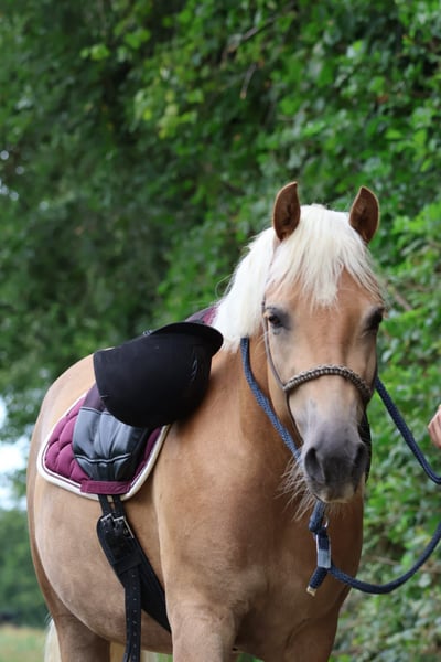 Dear 5-year-old mare for sale - approximately 1.48 m in height With a heavy heart, I am selling my mare, as I unfortunately do not have the time to further develop her. She is an absolutely sweet and well-behaved mare without any vices. She is familiar with tractors, dogs, chickens, farriers, and trailer loading - all without any problems. She was in training at the end of last year and is also comfortable going out alone. In the arena, she reliably shows good walk, trot, and canter - she is eager to learn and cooperative. However, she is still not fully trained due to her age and should be further developed. She is strong-minded, people-oriented, and has a great character - ideal for someone who enjoys working with a young, honest horse. Only to loving and experienced hands. Home before price.