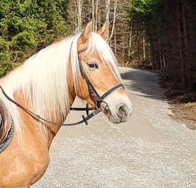 Alois is looking for a new home. Alois is an elegant 4-year-old affectionate gelding with a lot of movement. Due to his balanced character, he is suitable as a leisure horse, whether for riding or driving, and he can certainly be further developed for sports, as some from his lineage have already proven. Alois has been backed for trail riding and has already been driven in a pair. All our horses grow up in a herd on our premises, spending the summer on a large pasture and the winter in a stable with ample turnout. If you are looking for a young talented horse that your whole family can enjoy, then Alois is definitely worth a visit. We are a family-run business that has been breeding Haflingers for 50 years in the 3rd generation. Not looking for a gelding? With us, you will also find older mares or yearlings, as well as 3-year-old mares that will be presented in the spring. Our mares are all ridden and driven in the field, in the winter with a sled and in the summer with a marathon carriage. If you are interested, we look forward to introducing you to a loving young Haflinger gelding.