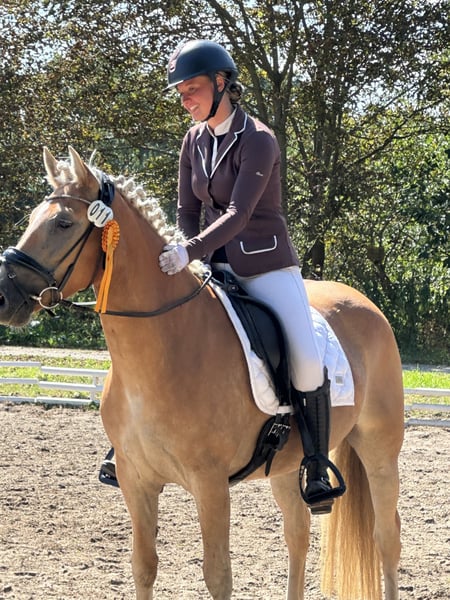 Haflinger Stute, geb. 2019 – Vielseitige Dressurpartnerin Diese charmante Haflinger-Stute wurde im Jahr 2019 geboren und überzeugt durch ihre freundliche Art sowie ihre vielseitigen Fähigkeiten im Dressursport. Mit ihrem ausgeglichenen Charakter ist sie sowohl für ambitionierte Freizeitreiter als auch für fortgeschrittene Dressurreiter eine ideale Wahl. Im Umgang ist sie ein wahrer Schatz, die Ruhe selbst. Beim Reiten (Platzarbeit) braucht sie einen Reiter, der kein Anfänger ist. Sie ist lieb, hat aber viel GO. Im Gelände ist sie sehr ausgeglichen. Auch das Springen liegt ihr und sie hat viel Freude daran, das wurde bei uns aber nicht weiter gefördert. Sie verfügt über eine solide Grundausbildung im Dressurbereich und zeigt bereits viel Talent für die klassischen Dressurlektionen. Durch ihre robuste Konstitution und ihren angenehmen Bewegungsablauf ist sie bestens geeignet, um sich in der Dressur weiterzuentwickeln und an Turnieren teilzunehmen. Sie ist mehrfach A platziert und gewonnen. Die Haflinger-Stute ist gut erzogen, schmust gern mit ihrem Menschen und ist im Umgang stets freundlich und zuverlässig. Sie ist regelmäßig entwurmt, geimpft und gesund. Aufgrund ihrer angenehmen Art eignet sie sich auch gut für Reiter, die Wert auf eine harmonische Partnerschaft legen.