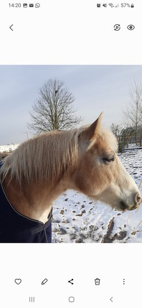Hallo, ich bin Jessy und Ich suche für 1-2x die Woche (Tage können flexibel abgesprochen oder auch fest vergeben werden) eine Pflege-/Reitbeteiligung für meinen 14-jährigen Haflinger-Wallach Räuber. Er wird freizeitmäßig geritten (gebisslos) und liebt Bodenarbeit und Ausritte. Räuber steht zusammen mit seinem Hafi-kumpel in einem kleinen privaten Offenstall bei Erlangen, ein bisschen Mithilfe (1 Karre misten, evtl. Heunetz aufhängen) im Stall wäre daher erwünscht 😀