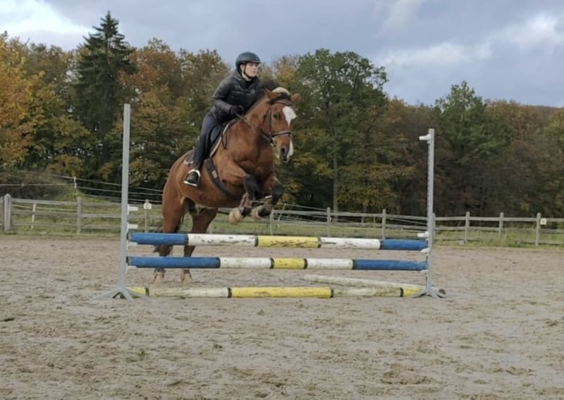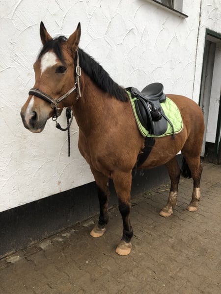 Wir verkaufen schweren Herzens wegen Betriebsaufgabe unseren Knupp. Der hübsche Wallach wird am 03.April 16 Jahre und ist seit Februar 2019 in unserem Besitz. Durch seine Größe von 1,48m und seiner kräftigen Statur eignet er sich hervorragend für Kinder und Erwachsene. Knupp ist beim reiten sehr brav. Manchmal kommt der Haflinger etwas durch und er ist ein wenig faul und eigenköpfig. Jedoch nie bösartig. An der Longe läuft er nicht so gerne, tut es aber wenn es sein muss. Bei der Bodenarbeit, überprüft er öfter mal, ob noch irgendwo versteckte Leckereien in der Tasche sind. Knupp lief bei uns Dressurstunden sowie Springstunden und wurde natürlich auch im Gelände geritten. Er lebt zur Zeit mit anderen Wallachen zusammen im Offenstall. Kennt aber auch Box mit täglichem Weidegang. Er war bei uns immer vorne beschlagen. 2017 hatte er einen Fesselträgerschaden. Dieser ist jedoch komplett ausgeheilt und hat niemehr Probleme bereitet. Ansonsten war er bei uns noch nie krank/verletzt. Wir wünschen uns für Knuppi einen Endplatz in privaten Händen. Kein Notverkauf. Passendes Zubehör kann dazu erworben werden.