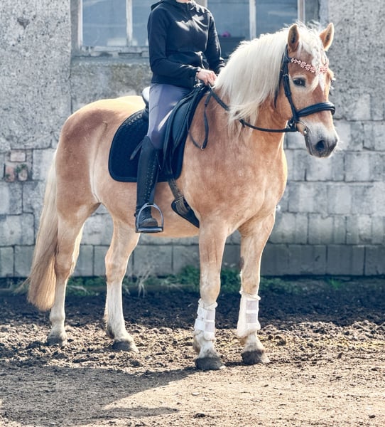 Wir geben unseren 17 Jahre alten Haflinger Wallach ab, er hat ein ungefähres Stockmaß von 1,50m und deckt sehr gut ab. Er ist super lieb und hat Spaß an der Arbeit, ob es in der Dressur ist oder beim Springen. Laut Vorbesitzer soll er auch Gefahren sein was wir aber nie Probiert haben. Bei ernsthaften Interesse schicken sie mir gerne ihre Telefonnummer und wir rufen mal durch Wir berechnen fürs probereiten 20€ um Reittourismus zu vermeiden was selbstverständlich beim Kauf angerechnet wird