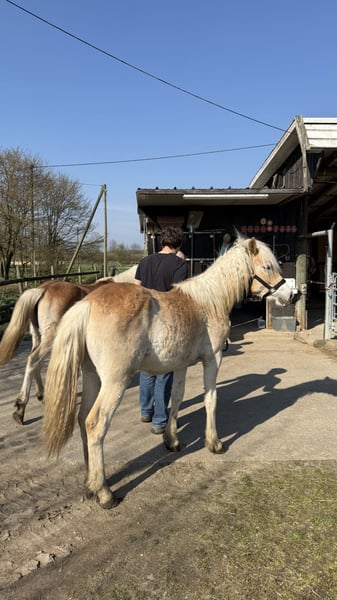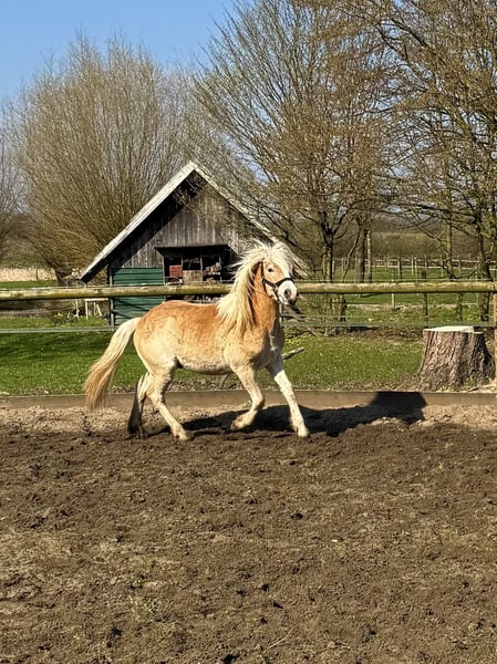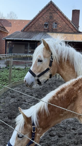 Wir verkaufen dieses hübsche Haflinger-Wallachfohlen aus einer durchgezüchteten Mutterlinie. Bert bringt das ideale Potenzial für Sport und Freizeit mit. Er punktet neben seiner Optik und dem typischen hellen Langhaar vor allem durch einen klaren Kopf. Er ist menschenbezogen, unerschrocken und geht neugierig auf neue Aufgaben zu. Er kennt das Anbinden, Führen, Putzen und landwirtschaftliche Maschinen. Damit bringt Bert sehr gute Grundlagen der Erziehung eines Jungpferdes mit. Er ist an den Menschen gewöhnt, lässt sich überall anfassen und ist damit auf das Leben als Reit- oder Kutschpferd vorbereitet. Vor allem kennt er das nebenherlaufen an der Kutsche. Bert ist mit seinem gleichaltrigen Kumpel Ernie artgerecht in einer Herde im wunderschönen Münsterland aufgewachsen. Die weitläufigen Wiesen und Weiden haben ihnen Trittsicherheit und Gelassenheit mitgegeben, die man sich von einem jungen Haflinger wünscht. Beide Fohlen sind robust im Offenstall aufgewachsen, werden regelmäßig entwurmt und haben einen Equidenpass. Beschreibung: Name: Bert Rasse: Haflinger (mit Edelblutanteil) Geschlecht: Wallach Geburtsdatum: 14.01.2025 Farbe: Fuchs mit hellem Langhaar Endmaß: voraussichtlich 145-150cm Zucht & Qualität: Bert stammt aus einer offiziell eingetragenen Zucht im Münsterland. Er besitzt volle Papiere (Abstammungstafeln) vom Rheinischen Pferdestammbuch. Bei der Anpaarung wurde besonders auf Charakterfestigkeit und korrektes Fundament geachtet. Bert ist gegen Tetanus geimpft, gechippt, besitzt einen Equidenpass und wurde dem Zuchtverband vorgestellt. Eignung: Durch sein korrektes Gebäude und seine schwungvollen Grundgangarten stehen Bert später alle Wege offen. Ob als Freizeit-Pferd, im Fahrsport oder für den ambitionierten Breitensport ist er ein nervenstarker Partner. Melden Sie sich gerne unter der Rufnummer: Kontakt: +49 152 05977730 Hinweis: Ein Kennenlernen ist jederzeit nach Absprache möglich! Bert und sein Kumpel Ernie können einzeln oder zusammen abgeben werden (Platz vor Preis).